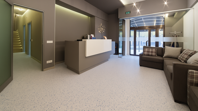 Commercial-grade vinyl flooring is built for high-traffic environments and is resistant to scuffs, scratches, and wear from foot traffic, wheeled chairs, and even delivery trolleys. This is perfect for reception zones and corridors that see a lot of movement throughout the day.